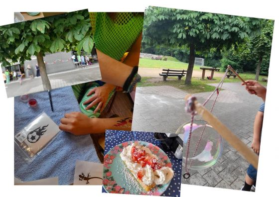 Zwischendurch zeigte sich erfreulicherweise immer wieder die Sonne und so wagten sich auch die Erwachsenen ins Freie, betrachteten das entspannte Tun ihrer Kinder oder versuchten sich selbst in Riesenseifenblasen, Dosenwerfen oder beim Boulespiel. Am Ende des Festes waren sich alle einig: glückliche Kinder und glückliche Eltern – was will man mehr?!